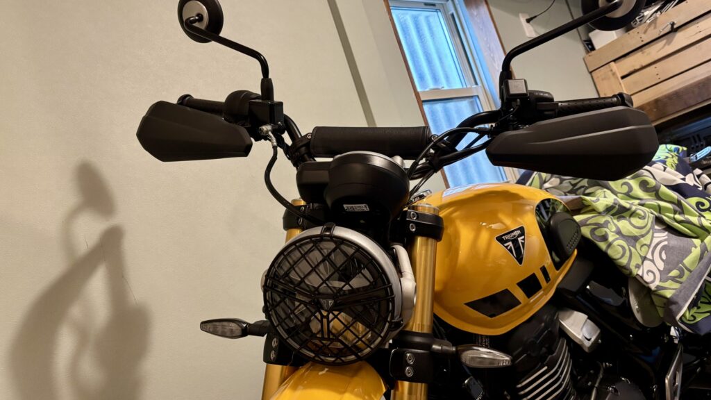 5月頃から乗り換えを考えていたんです。候補もいっぱいあって悩んだ末にトライアンフ スクランブラー400XCになりました、はい。うーんカッコええ~