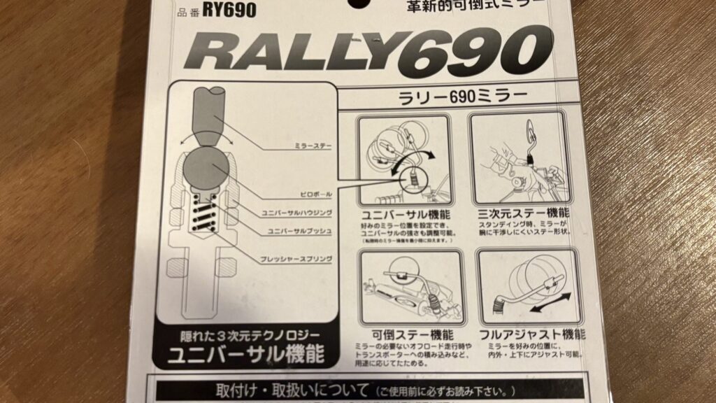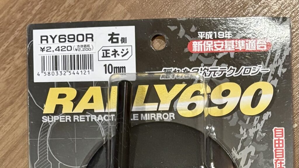 そんなわけで用意したのがこちら!ラフアンドロードのRALLY690ですね。XR230の時もこのミラーを使っていました。同じような構造のミラーも販売されていますが、オススメは使いやすいRALLY690です!