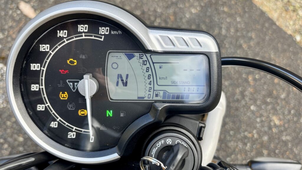 メーターのレイアウトなんですがタコメーターが見にくいです。もう少し表示を大きくして欲しかったなぁ。まぁ慣らしの時しか見ないと思うからいいのですが、はい。