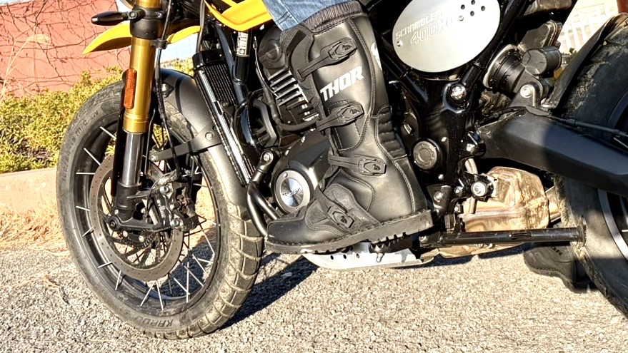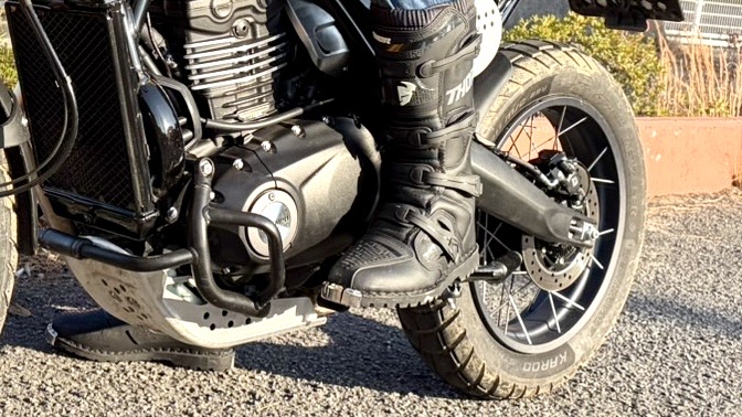 今回トライアンフ スクランブラ400XCはチェンジペダルを10ミリほど下に下げました。