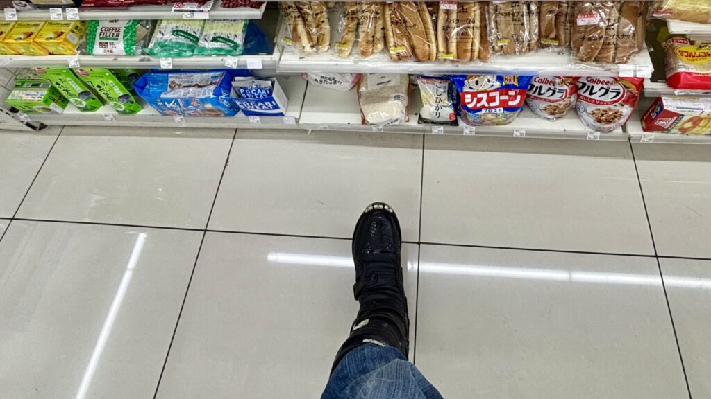 それから、注意なんですが、新品のブーツはコンビニの床ではまったくグリップしません!濡れていたら更に危険でしょう。転けないようにしてくださいね。(転けても足首だけは、守れるかも)
