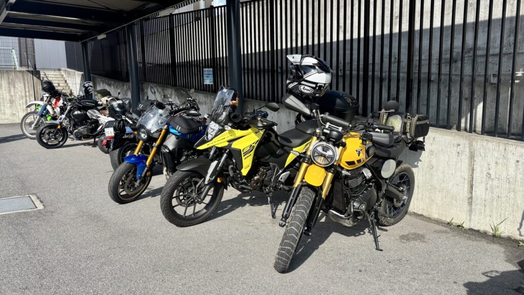 歩道の段差があればここで足首をグイグイっと曲げて形をつけます。この日もバイクから降りるたびにやりました。