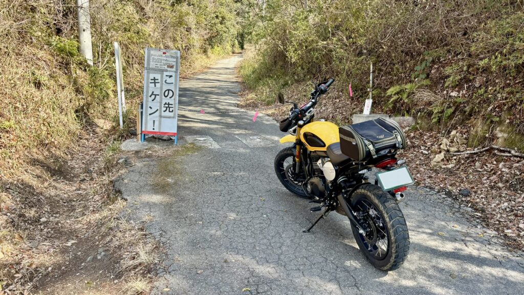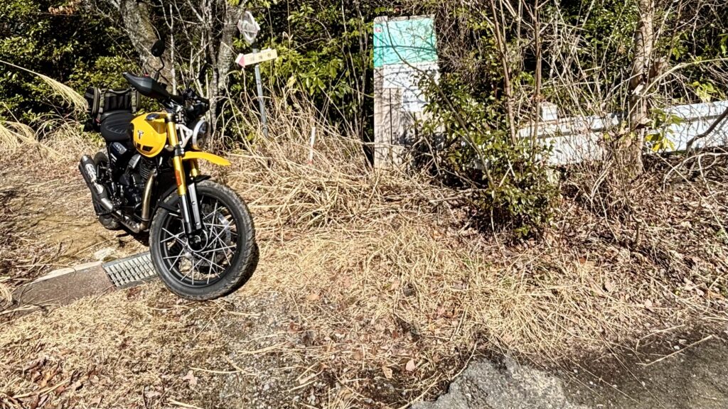 で、今回の目的は、『梵天山展望台』へのアタックです。よくSNSの投稿で見かけるのでスクランブラー400XCでも一度行ってみようと思ってここまでやってきました。