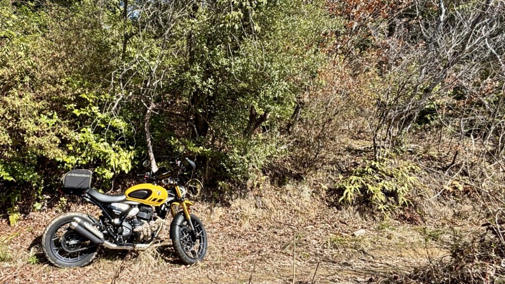 林道区間に入りスクランブラー400XCに跨がってアクセルを開けると、パワーもほどよくポンコツな自分でも「これならいけるかなぁ」って思わせてくれます。はい。
