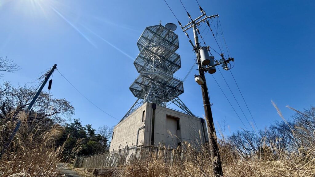 NTTコム 信達南無線中継局が見えてきました。青い空が気持ちいいです。