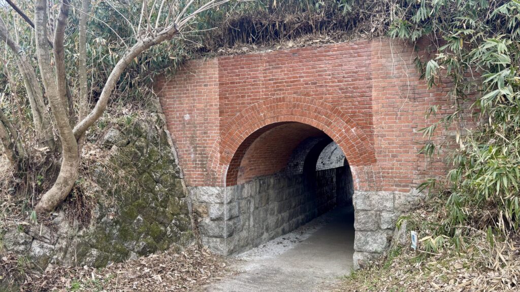 赤橋のすぐ横にある梶ケ谷隧道です。レンガ作りの立派な隧道です。